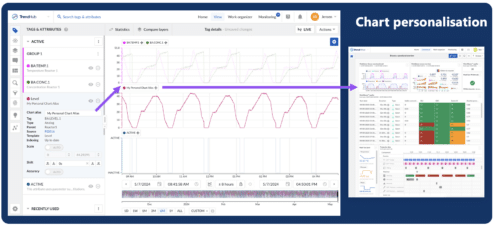 Every user of the TrendMiner platform can personalize his or her view with the new chart alias option for tags and attributes. When combined with the options for grouping, coloring, and scaling, users can give more meaning to the view. This helps convey the right message in reports and dashboards for users, the team, or the entire organization.